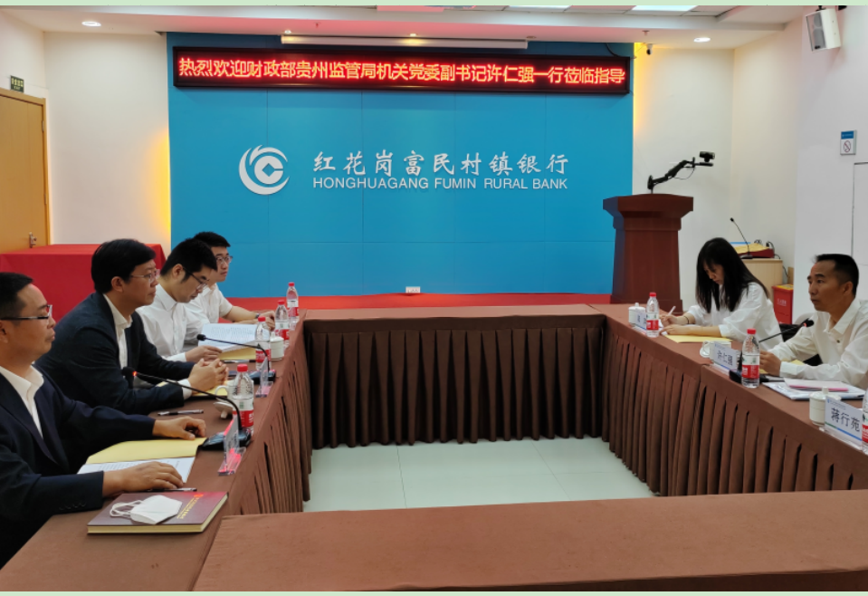 2023年6月8日上午,财政部贵州监管局机关党委副书记许仁强一行三人莅临我行指导调研,富民村镇银行贵州管理部常务副主任杨洪劲参加了会议。