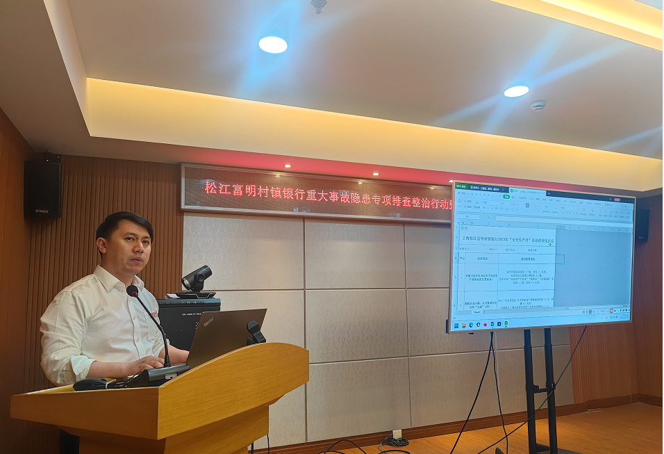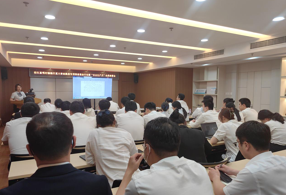 为贯彻落实党的二十大精神和习近平总书记关于安全生产重要论述,按照上海银保监局关于重大事故隐患专项排查整治2023行动工作安排,确保上海松江富明村镇银行(以下简称“我行”)安全稳健运行,我行组织召开2023年重大事故隐患专项排查整治行动暨“安全生产月”动员部署会。总行领导班子及全体员工参加会议。