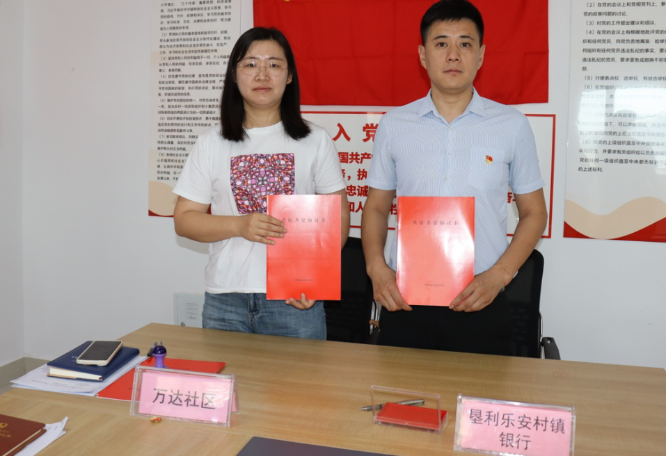 为深入贯彻落实党的二十大精神,进一步加强新形势下基层党组织建设,创新党建工作方式,更好地服务社区居民。6月9日上午,垦利乐安村镇银行党支部与万达社区党委共同举行“同心同力同携手·共筑共建共发展”为主题的结对共建签约仪式。