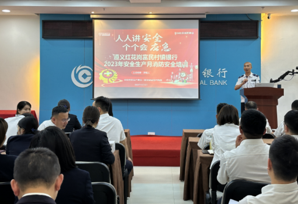 为进一步培养银行员工的安全意识,增强实践操作能力,切实提升全行防范消防安全隐患整体水平。近日,遵义红花岗富民村镇银行(以下简称“我行”)组织开展2023年安全生产月消防安全培训活动,全行70余名员工积极参加本次培训演练。