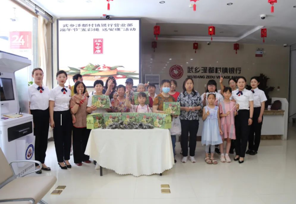 为弘扬中华民族优秀传统文化,积极培育和践行社会主义核心价值观,丰富精神文化生活,6月20日,武乡泽都村镇银行营业部组织员工开展拔艾草、赠艾草、编彩绳、送粽子等一系列端午节活动。