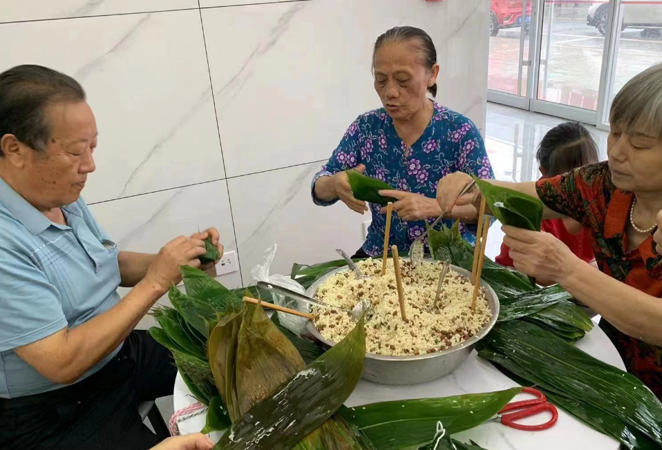 活动一早,员工把提前准备好的糯米、红枣、粽叶等材料整齐地摆放在桌子上。上午9点活动正式开始,来自各村镇的客户朋友围坐在一起,纷纷露出看家本领,随着比赛一声令下,纷纷进入“战斗”状态,捋叶、卷筒、填料、压料、扎绳……粽叶在一双双巧手中翻转、压实、成型,不一会儿就变成了一个个诱人的粽子。现场粽叶飘香,欢声笑语,洋溢着浓厚的节日氛围。