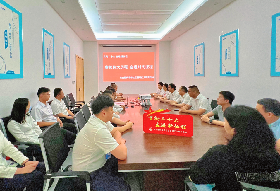 为深入落实习近平总书记关于“全面学习、全面把握、全面落实”的重要指示要求,持续推动学习宣传贯彻党的二十大精神往深里走、往实里走、往心里走,以高质量党建引领促进共同发展,7月5日下午,江苏东台稠州村镇银行党支部与何垛桥社区党总支联合举行了“贯彻二十大,奋进新征程”主题宣讲活动,共同学习领悟党的二十大精神。