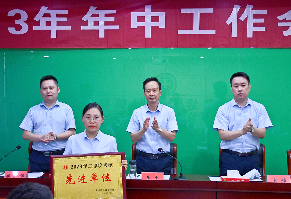 大会还举行了颁奖仪式,6月考核得分第一名的网点曲阳路支行荣获“2023年二季度考核先进单位”荣誉称号。