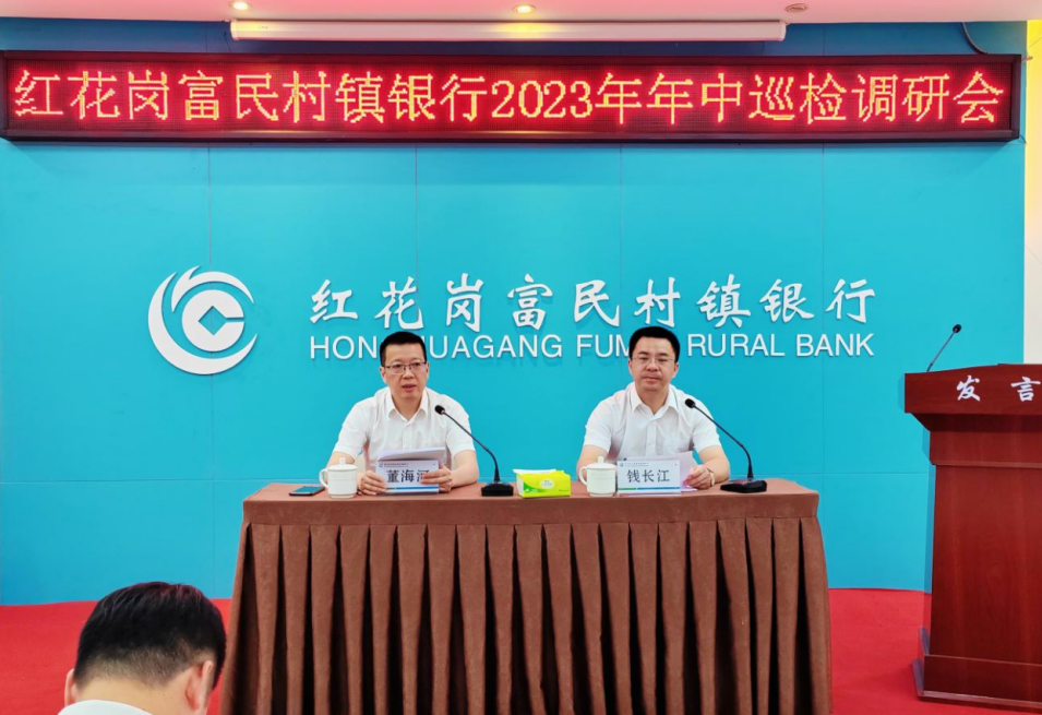 7月18日,遵义红花岗富民村镇银行主发起行浙江温州鹿城农村商业银行行长董海河携村银办财务会计部总经理王向华、贵州管理部副主任曾世军、村银办综合管理部主管郑旦莅临遵义红花岗富民村镇银行(以下简称“我行”)开展2023年年中巡检调研。我行高管班子、中层干部、客户经理、风险经理参加了本次巡检会议。