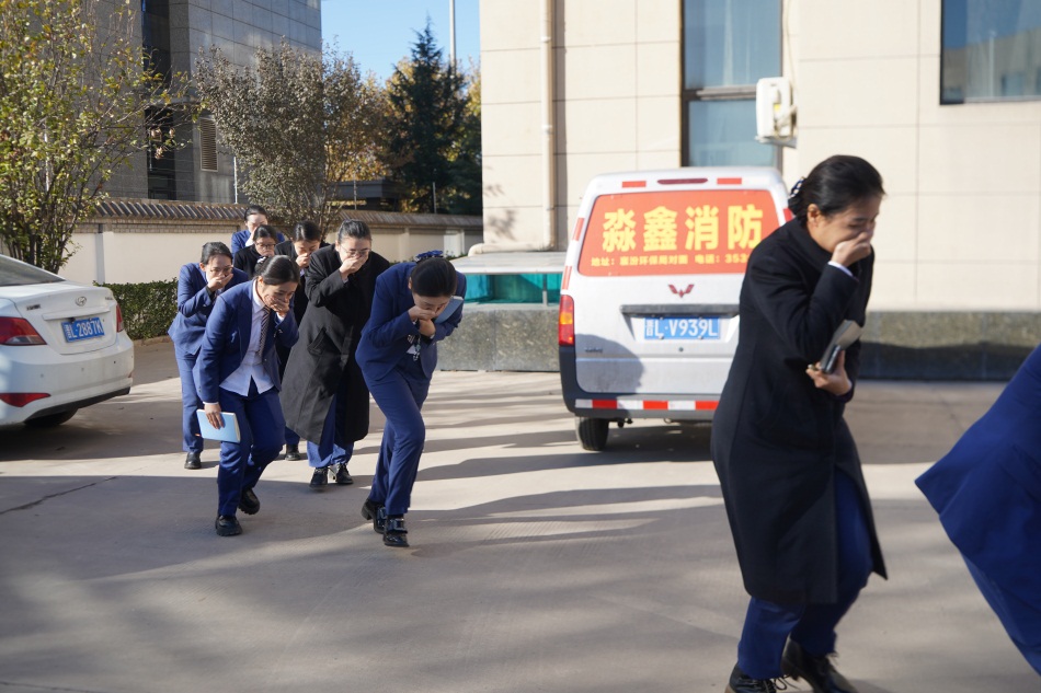 在消防宣传月期间,国家金融监督管理总局襄汾监管支局现场督导,总行、各支行分别组织开展消防安全应急疏散演练,随着警报声响起,员工们迅速按照预定方案,用湿毛巾捂住口鼻,低姿前行,有序疏散至安全区域。在灭火演练环节,参练人员熟练操作灭火器,成功扑灭模拟火源,达到了预期效果。