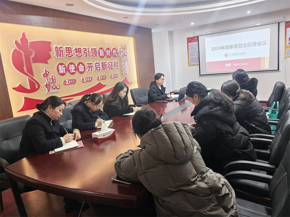 12月23日下午,吉安稠州村镇银行运营管理部(以下简称“该行”)在三楼会议室组织召开2024年四季度会计条线营业经理例会,会议由运营管理部总经理助理刘晨主持,各网点营业经理及会计检辅岗参加。