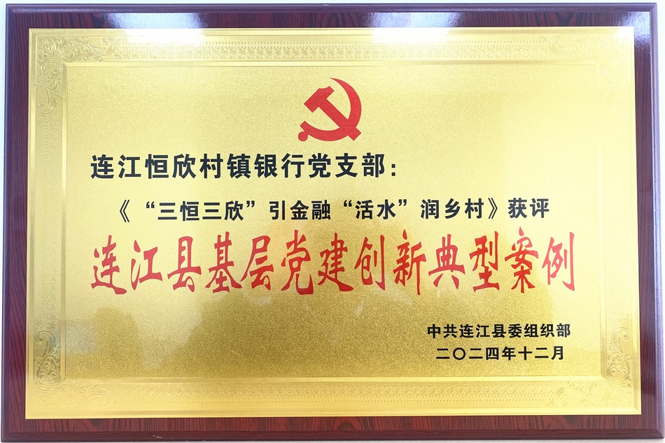 1月17日,连江县委组织部召开2025年第一季度组织委员例会暨基层党建典型案例颁奖仪式,连江恒欣村镇银行“三恒三欣”党建品牌获评“连江县基层党建创新典型案例”。