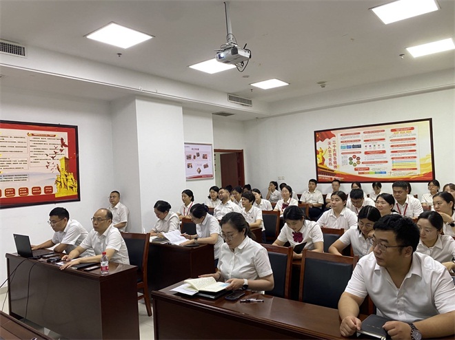 风险合规部负责人依次阐述分享了6月数据通报、及该部室人员岗位职责公示、《石家庄恒升村镇银行信贷集中审核管理办法》讲解、审核相关数据通报;资产保全部通报上半年清收活动排名及当年新增不良贷款、历年不良贷款压降竞赛活动数据,解读近期发布的资产文件;财务会计部关于反诈及诉讼费申请退款相关工作提示,通报6月份厅堂工作数据;综合保障部通报近期投诉情况及全省第九轮银行业金融机构安全评估工作再动员。