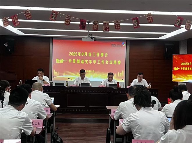 8月21日,海宁德商村镇银行组织召开2025年8月份工作例会暨进一步贯彻落实年中工作会议精神。总行行领导、信贷总监、各支行(营业部)负责人、副职、助理、团队长、各部室负责人参加了此次会议。