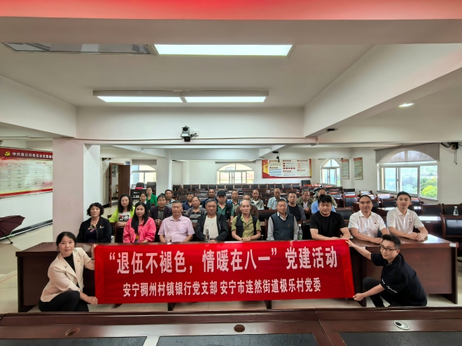 8月21日,在第80个中国人民抗日战争胜利纪念日来临之际,云南安宁稠州村镇银行党支部联合极乐村委会开展“退伍不褪色,情暖在八一”党建主题慰问活动,把党的温暖与稠州银行的深情厚谊送到困难党员、退役军人的心坎上。