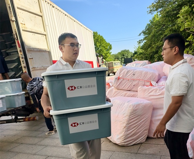 北京密云汇丰村镇银行(HBBJ)心系家园,积极响应防汛防洪抢险工作,第一时间向总部汇报灾情、申请援助,在总部的协调下,联合汇丰公益基金会48小时内调配了价值45万元的应急物资箱1500个,行长紧急召集志愿者,一同前往密云区不老屯镇政府协助官兵搬运物资。