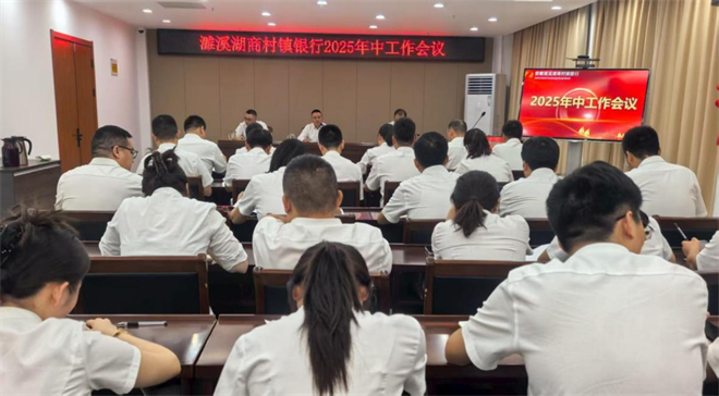 近日,安徽濉溪湖商村镇银行召开2025年中工作会议。总行班子成员、各部室负责人、各支行行长、会计主管、客户经理等80余人参会,全面回顾上半年工作成果,科学部署下半年重点任务。