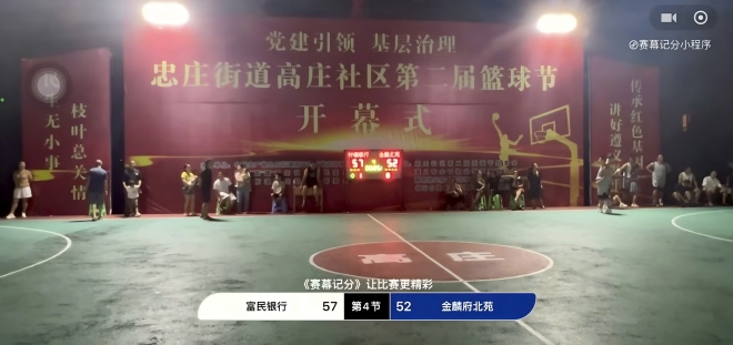 伴随着现场观众的阵阵助威声,比赛正式打响。我方迎战高庄社区金麟府北苑队,双方迅速进入状态。因我行投篮手感未达最佳、传球出现部分失误,使得分一度处于落后局面,队员们也感到压力倍增,但大家始终没有气馁,彼此鼓励、顽强追赶,每一颗球都拼尽全力,场面变得紧张激烈、扣人心弦。
