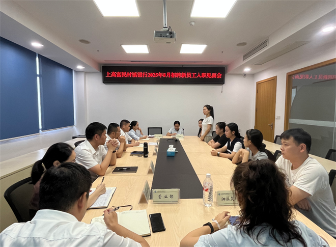 为帮助新员工尽快融入上高富民村镇银行(以下简称“该行”),明确业务发展方向,9月10日,该行举行新员工入职见面会。行领导、部室中层和营业网点负责人和新员工齐聚一堂,共同开启新员工的职场新篇章。