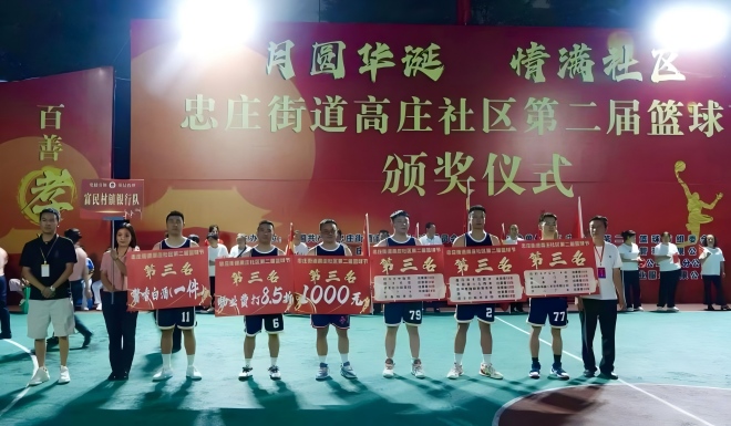 夏末秋初,微风徐徐,在这个充满活力的季节里,遵义红花岗富民村镇银行(以下简称“我行”)助力高庄社区第二届篮球赛盛大开幕。经过连日来的激烈角逐,由我行员工组成的“富民青年篮球队”奋勇拼搏,最终荣获第三名的优异成绩。