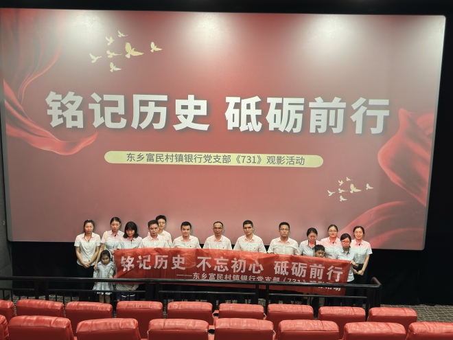 为深入推进爱国主义教育,传承红色基因,进一步增强员工的使命意识与担当精神。9月26日,东乡富民村镇银行党支部组织观看重大历史题材影片《731》,以光影回溯民族苦难,以历史淬炼初心使命,凝聚奋进新时代的金融力量。