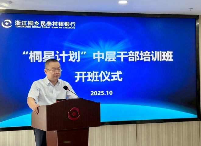 近日,桐乡民泰村镇银行“桐星计划”中层干部培训班正式拉开帷幕。本培训项目为期一年,由发起行民泰培训学校精心策划、统筹安排,并调度优质师资力量打造。旨在深度赋能桐乡村行发展,全面提升“中流砥柱”的战略执行力、经营管理水平与综合领导素养,为银行新一轮高质量发展注入强劲动能。培训班开班仪式、团队建设活动及首期核心课程《民泰银行企业文化的传承及导入》已圆满举行。