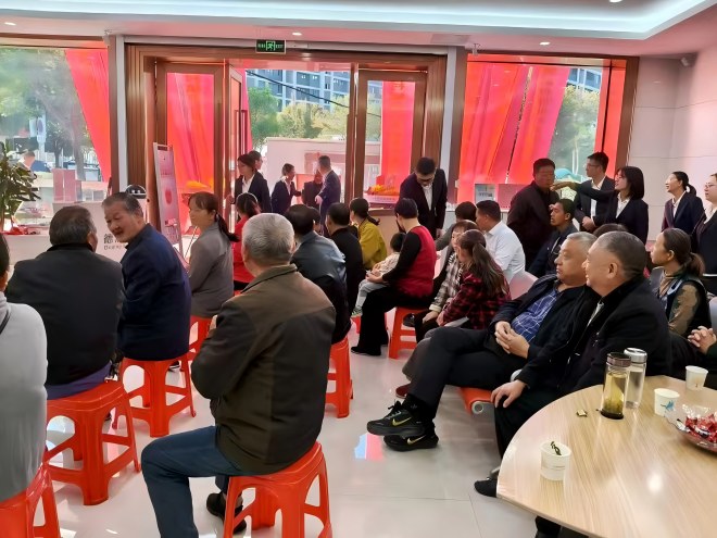 活动前期,各网点通过线上社群推送、客户经理上门邀约等多种方式,向周边社区老年客户发出邀请,详细介绍活动内容与专属权益,提前营造出浓厚的节日氛围。活动当天,恰逢禹越支行迁址,新网点厅堂焕然一新,大堂经理向每一位走进营业厅的客户分发糖果并送上一句“重阳安康”,让每一位走进网点的客户都能感受到满满的节日暖意。