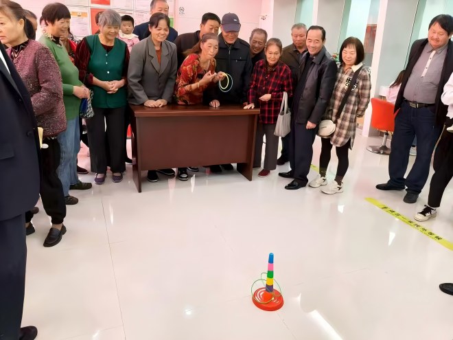 同时,趣味互动环节成为活动的一大亮点。“幸运套圈”“重阳知识问答”等游戏吸引了众多老年客户积极参与,大家踊跃答题、精准套圈,现场欢声笑语不断。活动设置了米、面、食用油等实用奖品,每位参与活动的老年客户都收获了心仪的礼品,脸上洋溢着开心的笑容。