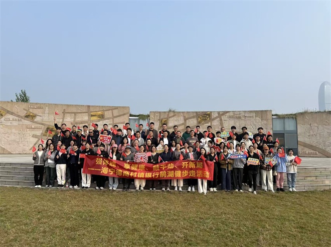 为丰富员工文化生活,倡导健康生活方式,激发团队活力,11月1日上午,海宁德商村镇银行工会组织员工赴鹃湖开展了以“强体魄、享健康、鼓干劲、开新局”为主题的健步走活动。各机构员工踊跃参与,大家在欢声笑语中感受运动魅力,蓄力新程。