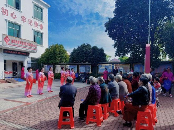 活动现场欢声笑语,气氛热烈。东乡金峰快乐之声艺术团的艺术家们为长辈们准备了一场精彩的文化盛宴。旋律优美的经典老歌联唱,唤起了大家美好的时代记忆;韵味十足的戏曲选段,引得台下戏迷们轻声跟唱,陶醉其中;活力四射的舞蹈表演,展现了新时代老年人积极向上的精神风貌;由艺术团自行编排的十赞富民歌曲受到大家一致好评,现场掌声、欢笑声不断。台上激情洋溢,台下热情互动,整个社区沉浸在一片欢乐祥和的节日氛围中。