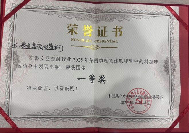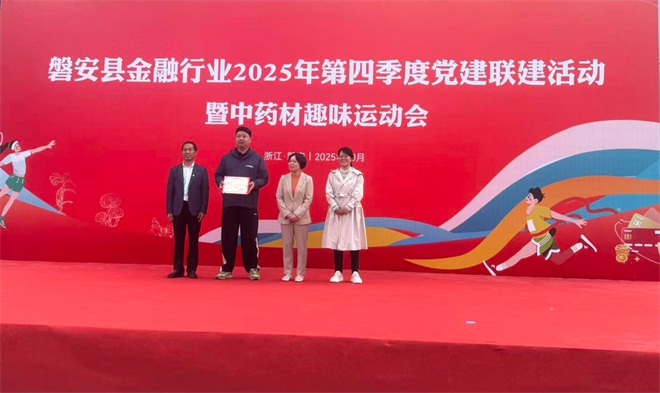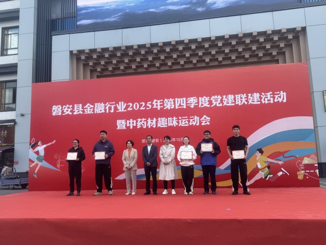 为深化党建引领金融服务中药产业发展的联动效能,10月29日,“磐安县金融行业2025年第四季度党建联建活动暨中药材趣味运动会”在江南药镇萧统文化广场火热开赛。浙江磐安婺商村镇银行代表队凭借默契协作与拼搏精神,在本次运动会中脱颖而出,斩获团体第一名的佳绩。
