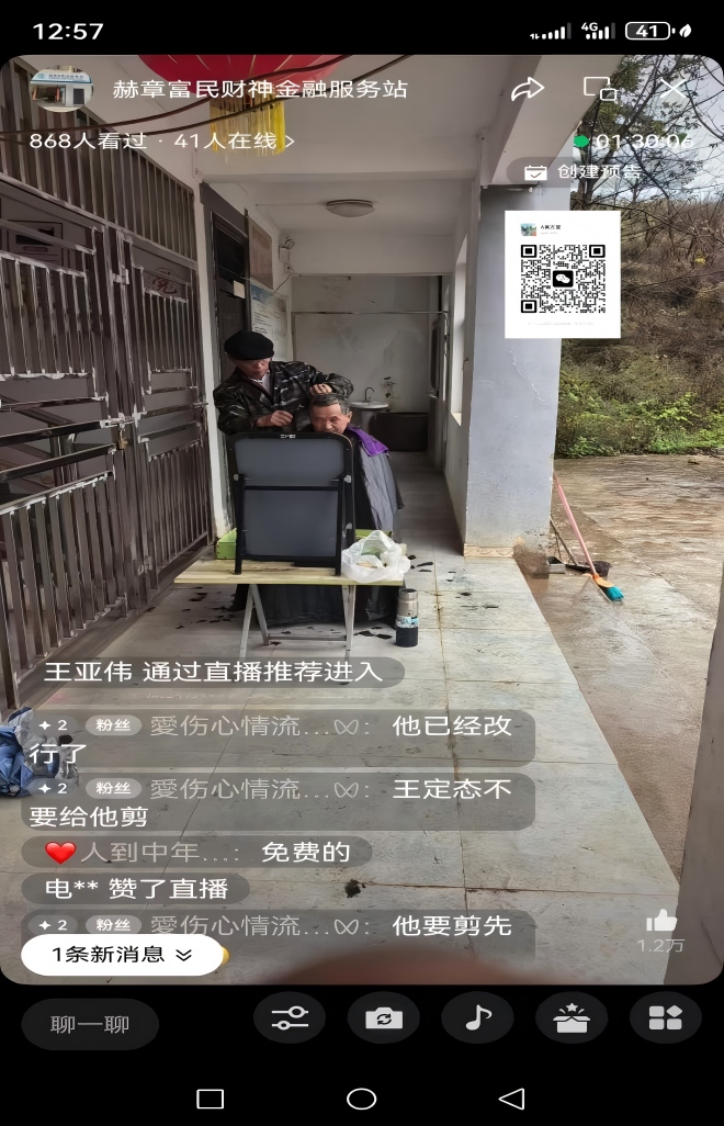 活动期间,银行工作人员与专业理发师协同配合,于村内便民点设立服务摊位,为到场村民提供免费理发服务。理发师耐心细致地为每一位村民修剪发型,银行工作人员积极热情地向村民普及金融知识,现场解答有关存款、贷款等业务咨询。活动还通过线上直播方式,吸引外出人员参与互动,有效拓宽服务覆盖范围,增强活动互动性与影响力,切实让村民在活动中感受到金融服务的温度与贴心。