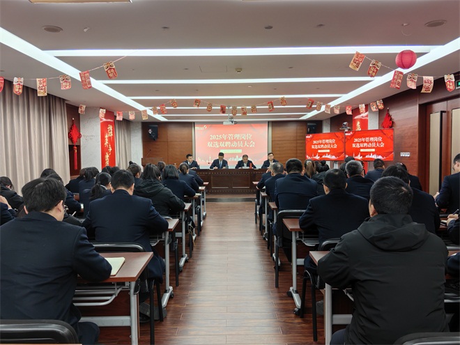 为持续优化人力资源配置和组织效能,推动全行业务高质量发展,11月18日晚,海宁德商村镇银行组织召开2025年管理岗位双选双聘动员大会,正式拉开本年度双选双聘序幕。总行领导班子、各部室及支行负责人,以及全行员工参加此次会议。