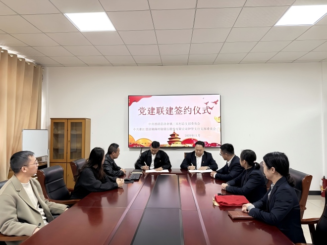 签约仪式上,双方党支部负责人发表了热情洋溢的致辞。在现场与会人员的共同见证下,两位书记共同签署了《党组织结对共建协议书》。这标志着双方正式确立了结对共建关系,开启了“银村合作、党建先行、金融赋能、共赢发展”的新篇章。