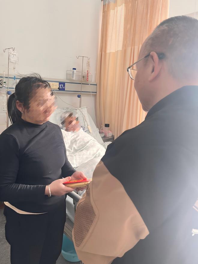 危急时刻,漳平民泰村镇银行党支部与工会迅速联动、高效响应,第一时间发起“爱心传递,守望相助”全行捐款倡议,向全体员工发出爱心号召。倡议一经发布,便引发全行上下热烈反响:行领导率先垂范、带头捐资,各级干部员工积极响应、踊跃参与,通过线上转账为主、线下现金补充的多元渠道慷慨解囊。短短两天内,爱心暖流持续涌动、汇聚成河,截至2025年1月19日,累计募集爱心捐款达2万元。爱心善款募集完成后,党支部与工会代表协同行动,由工会主席代表全行员工同步推进落实帮扶举措——一方面将2万爱心善款足额交付朱*仁,专项用于其母亲后续治疗与康复;另一方面专程赴医院开展探望慰问,向家属转达行领导的深切关怀与全体同事的诚挚问候,同步送上慰问金,以“资金支持+情感关怀”的双重举措,为困难员工家庭筑牢坚实后盾。
