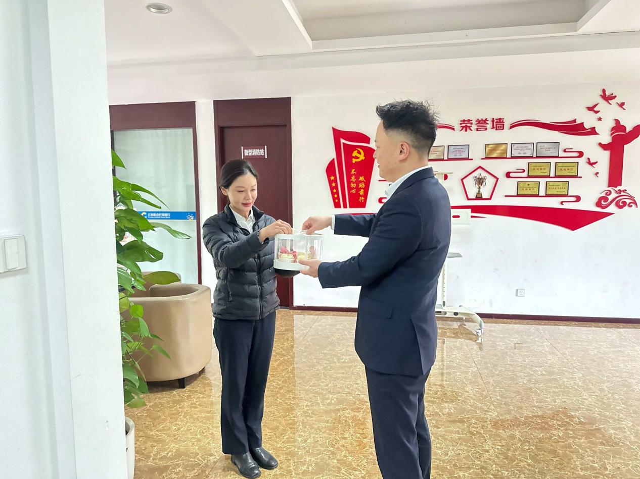 慰问现场暖意融融,工会领导将香甜蛋糕与实用面包卡逐一送到女员工手中,一句句亲切问候、一声声美好祝福,让大家真切感受到工会“娘家人”的贴心与温暖。收到节日礼物的女员工们笑容洋溢、倍感振奋,纷纷表示,将把组织的关怀转化为工作动力,立足本职、锐意进取,以更饱满的热情、更务实的作风履职尽责,为我行深耕县域、服务民生、打造精品村镇银行贡献更多巾帼智慧与力量。