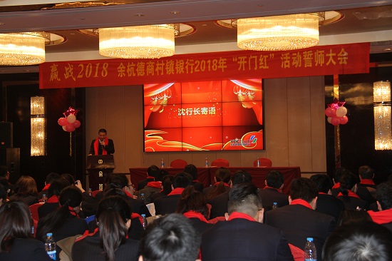 2018年1月15日晚,余杭德商村镇银行组织全体员工在塘栖大厦召开2018年开门红活动动员大会。这标志着本行新一轮“开门红”活动正式拉开大幕。