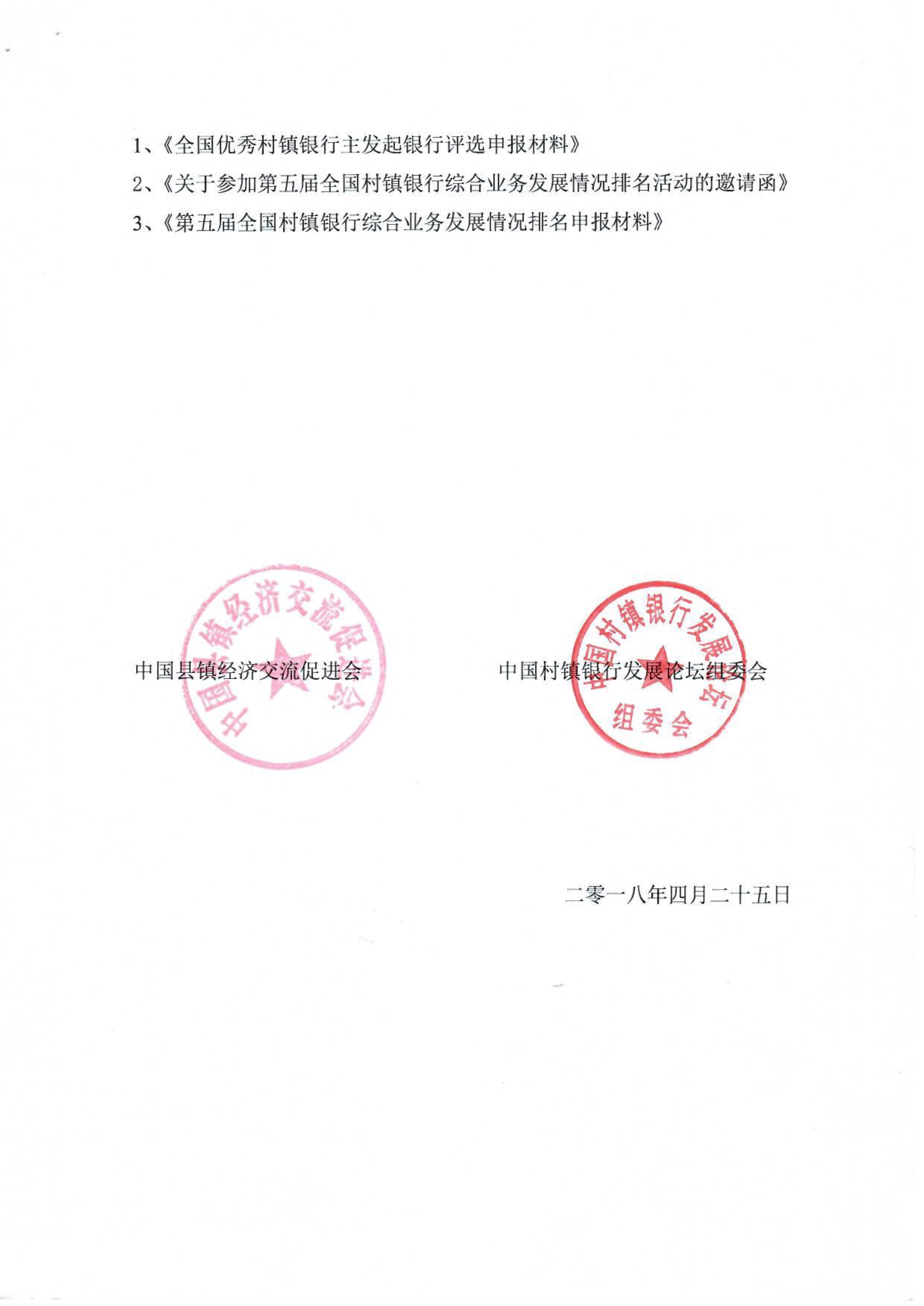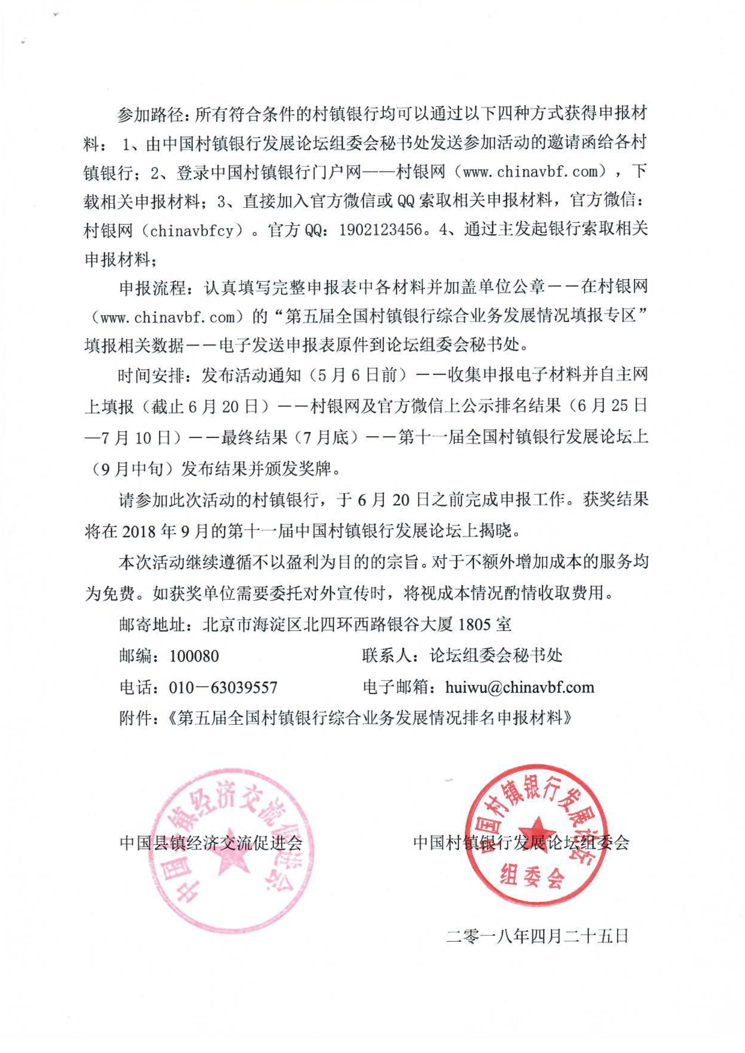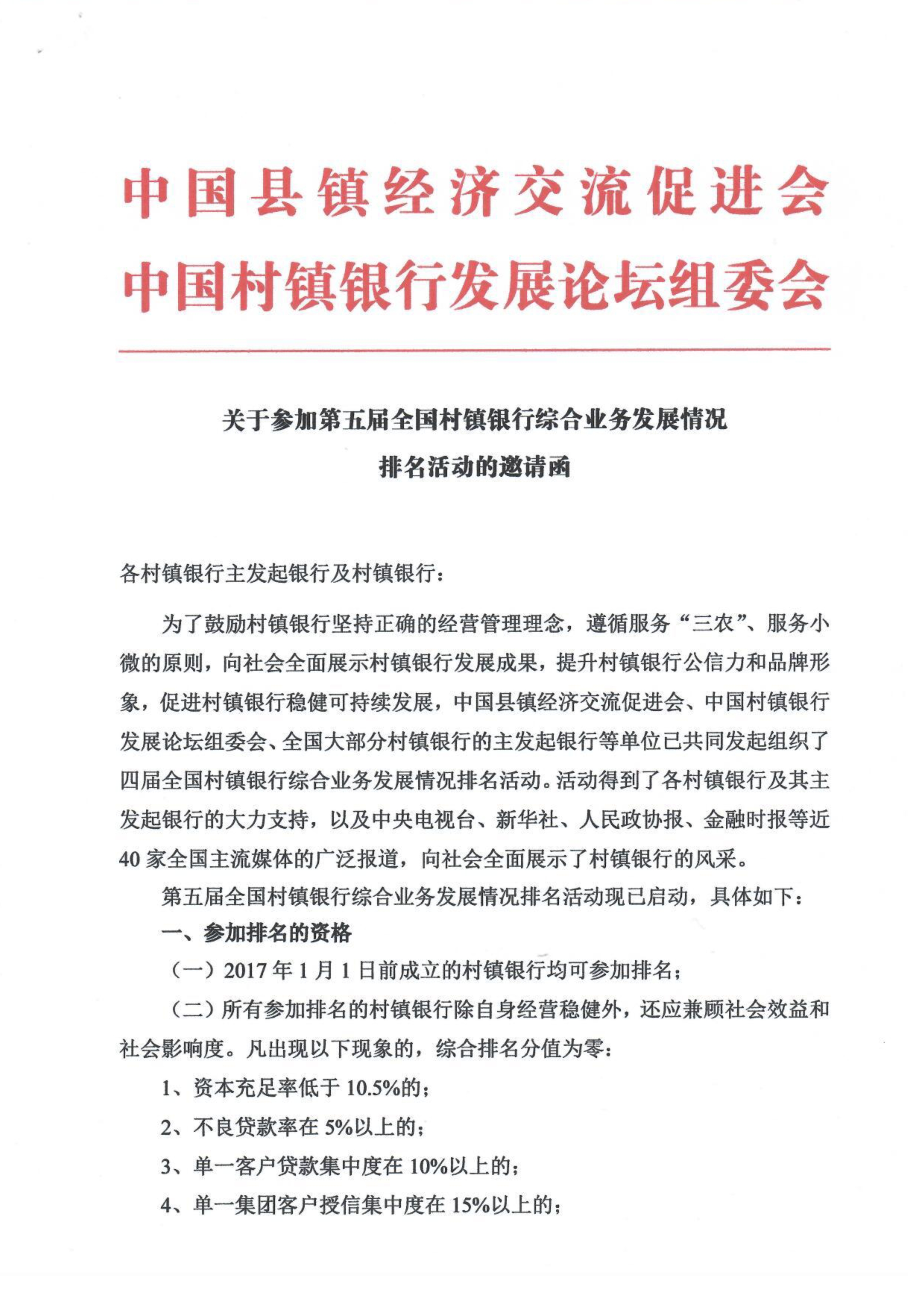附件二:关于参加第五届全国村镇银行综合业务发展情况排名活动的邀请函