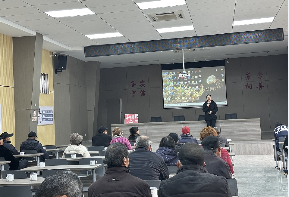 活动当日,祝会村老党员会议结束,支行行长助理走上讲台,首先为大家简单介绍海宁德商业务和特色,以及普及反诈防骗的案例。为提升宣传效果,此次宣讲特别注重与村民的互动,耐心解答他们的问题,如存单到期转存、转存利息是否计入转存本金等,并听取他们的意见和建议。