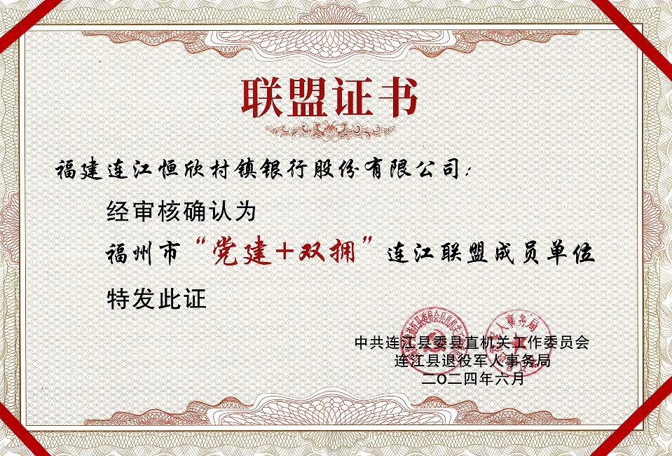 6月20日,福州市“党建+双拥”连江联盟在县退役军人事务局成立,连江恒欣村镇银行成为首批成员单位,林时泼监事长作为代表出席会议并到某部东湖营区开展慰问活动。