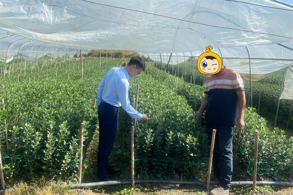 ▲桂银客户经理到蒙大哥的菊花种植基地实地调研