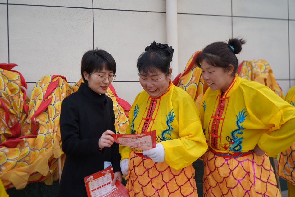 一位喜爱热闹且年年节日都自愿来参加表演的大妈拿着宣传册认真地向工作人员询问如何防范电信诈骗,工作人员耐心细致地为她讲解了常见的诈骗手段和应对方法,大妈听完后,恍然大悟,开心地说道:“这一趟来得太值了,既能快快乐乐地表演,还能学到实用的金融知识,真是收获满满!”