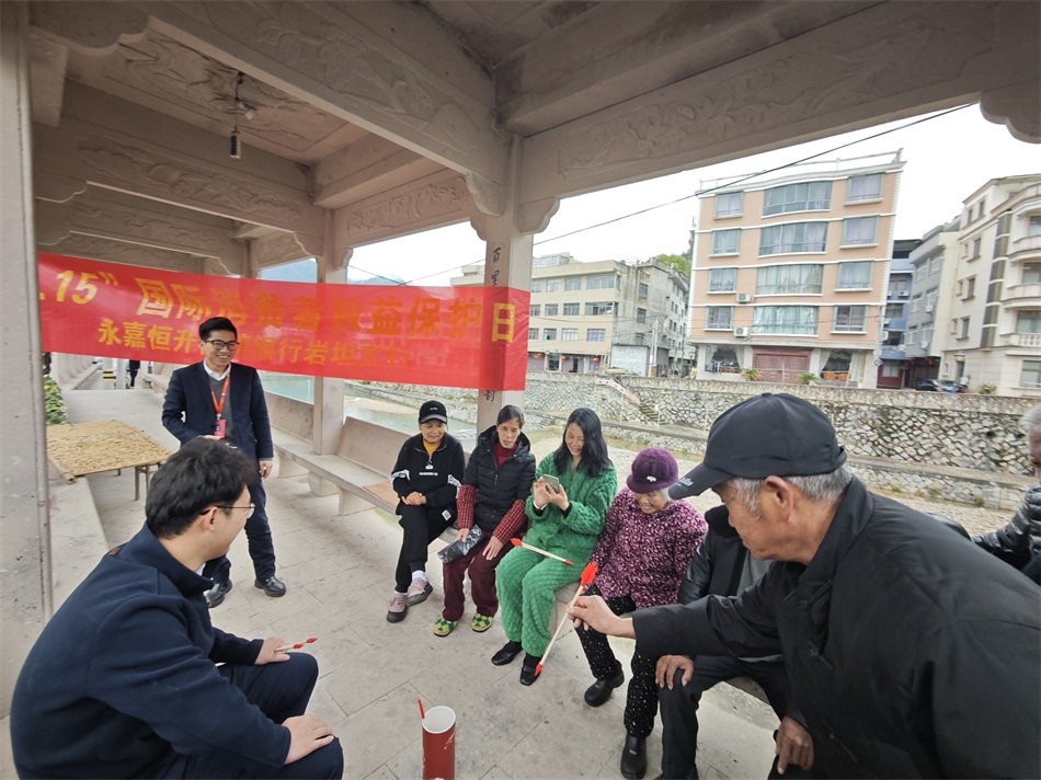 消费者权益保护宣传活动不仅限于“3·15”节点,永嘉恒升村镇银行将其转化为常态化服务,持续开展形式多样的宣教活动。未来,该行将继续深化与各部门的合作,推进金融知识普及工作品牌化、阵地化、常态化,切实将权益保护转化为群众看得见、听得懂、用得上的安全保障。