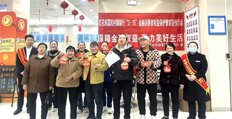 为了开展好2025年“3·15”金融消费者权益保护宣传教育活动,提高群众的参与度,遵义红花岗富民村镇银行(以下简称“该行”)在“3·15”活动期间,各网点齐头并进开展了一场别开生面的宣传活动,将金融消保知识普及与“鸡蛋免费领”巧妙结合,吸引网点社区居民踊跃参与其中,营造了浓厚的学金融知识、懂金融知识、用金融知识的良好氛围。