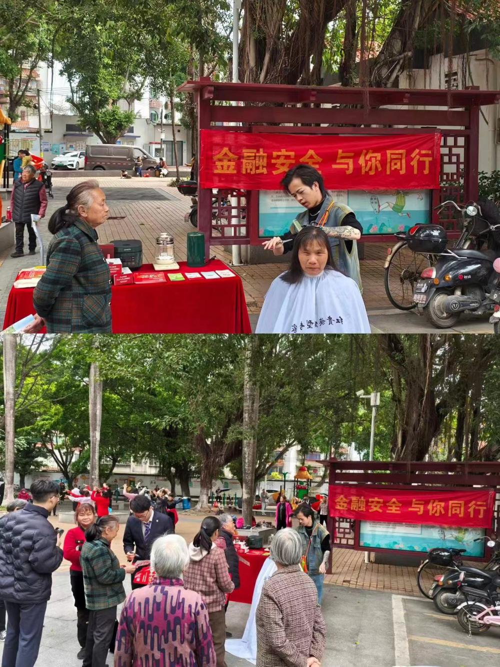 营业部、钟落潭支行特邀理发师开展“义剪焕新”活动,现场反响热烈。工作人员在理发椅旁摆放存款利率公示板,并为等候区的街坊讲解手机银行操作、介绍最新存款利率,根据街坊的资金需求灵活推荐存款产品。“剪完头发还能学怎么用手机银行查余额,办理定期,这才是实实在在的便利!”东平社区刘伯竖起大拇指。