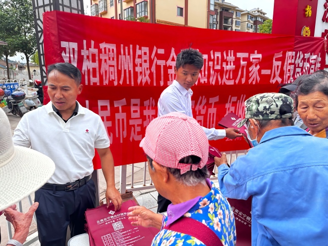 为坚决维护人民币法定货币地位,切实保障消费者合法权益,积极营造安全、和谐、便利的现金流通环境,根据中国人民银行相关工作部署与要求,9月12日,云南安宁稠州村镇银行双柏支行围绕“整治拒收现金行为,维护人民币流通环境”主题,组织开展专项宣传活动。