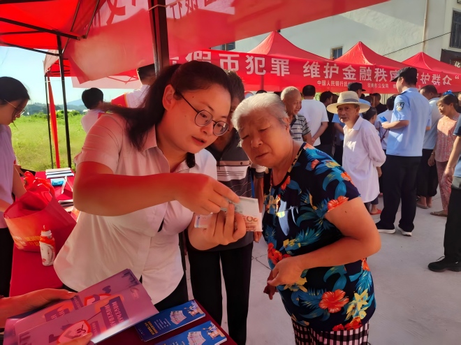 活动面向农村市民,特别是中老年人,通过直观、易懂的方式普及人民币防伪知识。宣传内容涵盖了人民币防伪知识、发现假币处置方法、假币犯罪典型案例以及数字人民币防诈反诈知识等多个方面。活动期间,我行组织辖内网点工作人员深入商圈、农贸市场等现金使用频繁的场所,通过现场讲解、实物对比、案例分享等多种形式,向商户和居民传授假币识别方法,提醒大家警惕“找零掉包”“以假换真”等常见诈骗手法。