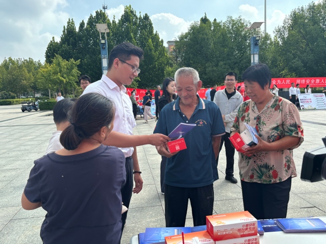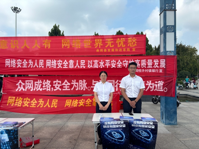 为深入贯彻落实中国人民银行关于网络安全工作的部署要求,全面提升广大消费者的网络安全意识和风险防范技能。9月16日按照当地县委网信办统一部署,曲周恒升村镇银行在河北省邯郸市曲周县人民广场开展2025年“网络安全为人民,网络安全靠人民——以高水平安全守护高质量发展”主题宣传活动。
