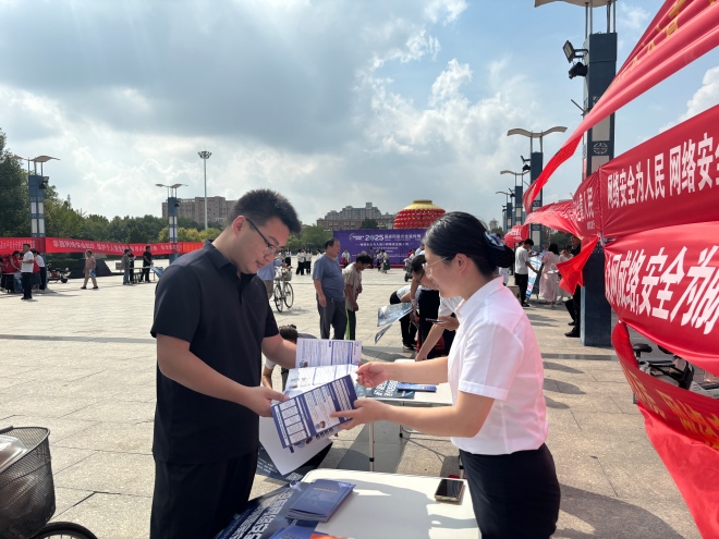 “线下”在曲周县人民广场现场,该行工作人员通过悬挂宣传条幅、设置宣传展桌、发放宣传折页等方式向过往群众普及网络安全理念,提高群众网络安全意识,突出金融科技在保护个人信息、维护金融网络安全等方面的重要作用,着力提升了广大群众在网络空间的获得感、幸福感、安全感。