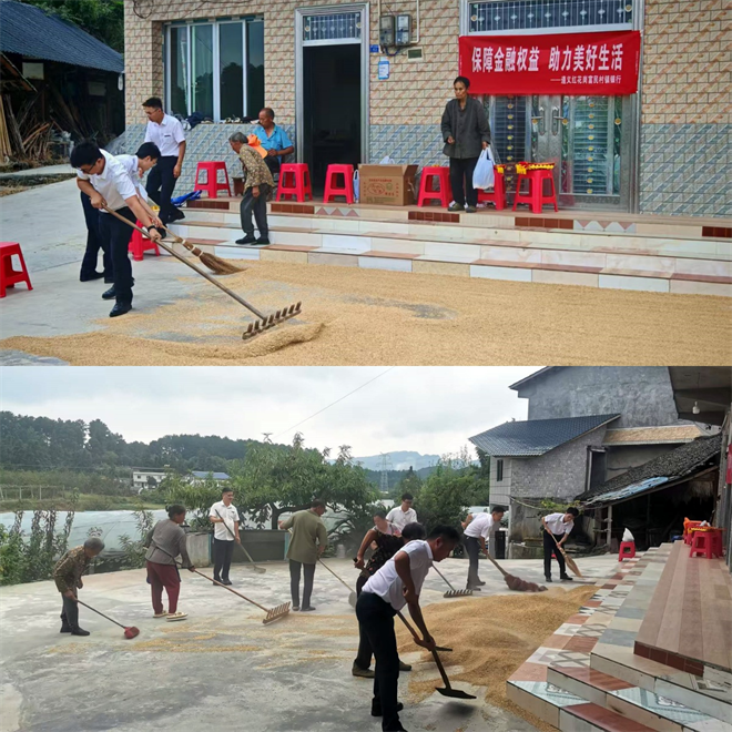 九月天如孩儿面,说变就变。活动途中忽然飘起细雨,而此时杜大哥家的院子里晒满了稻谷。杜大哥因腰伤收粮动作吃力,该行员工毫不犹豫放下手中的宣传资料,迅速上前帮忙。大家深知,稻谷是村民辛勤劳动的结晶,一旦被雨淋湿,反复晾晒不仅费时,更会影响收成。于是,你推我扫、你收我抬,紧张却有序。不少村民见状也纷纷加入,共同抢收稻谷。那一刻,该行员工与村民之间不仅是金融服务的关系,更成为了心贴心的亲人。