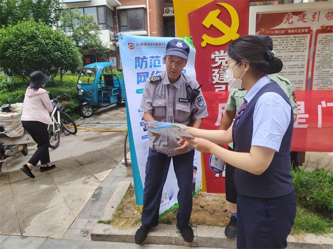 按照“贴近群众生活场景、打造沉浸式金融教育体验”的导向,沂源博商村镇银行在城南社区广场打造“金融知识互动体验区”,成为社区里的亮丽风景线。居民通过“假冒社保人员索要验证码”“虚假投资返利”等情景模拟、真实案例还原,轻松掌握防诈骗技巧。“刚才模拟的场景我上个月真遇到过!当时对方说我社保卡停用,让点链接补录信息,现在知道得先打12333核实,绝不能乱点陌生链接!”城南社区的王大爷拿着宣传手册,还拉着工作人员咨询了“养老账户安全”相关问题。