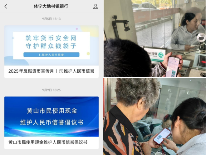 使用本行微信公众号转发各级人民银行发布的相关宣传资料、发布黄山市民使用现金维护人民币信誉倡议书,组织引导公众参与人行开展的反假货币知识网络竞答活动。