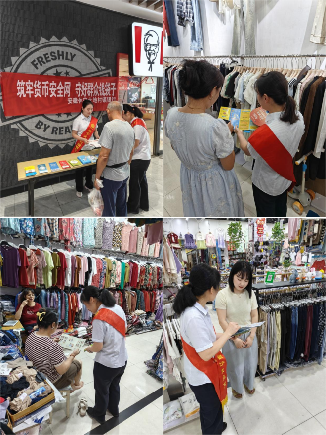 在商超内摆台,并针对商户逐户走访,讲解新版人民币防伪特征与假币处理方式,同时鼓励商户之间互相宣传。