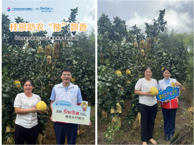 “尝尝这个,刚摘的,特别甜。”休息间隙,大家分享着亲手采摘的蜜柚,果香四溢,清甜多汁,赢得一片称赞。这样温暖而实在的助农场景,正是容县桂银村镇银行践行“金融为民”的生动写照。